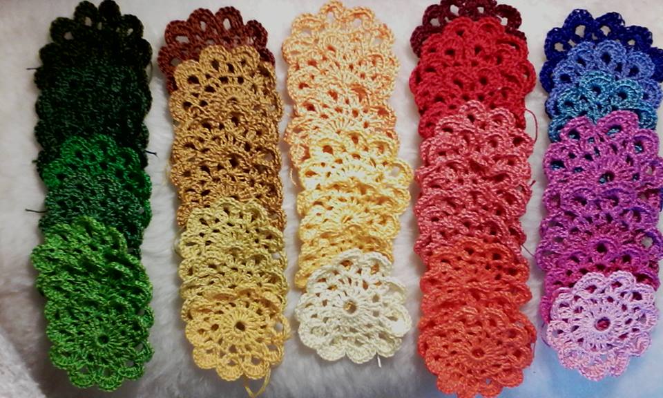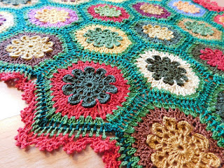 | A közel 100 db virágot aztán összehorgoltam, kitöltöttem a hézagokat és körbecsipkéztem az egészet.Csak így, egyszerűen és már kész is volt :) |