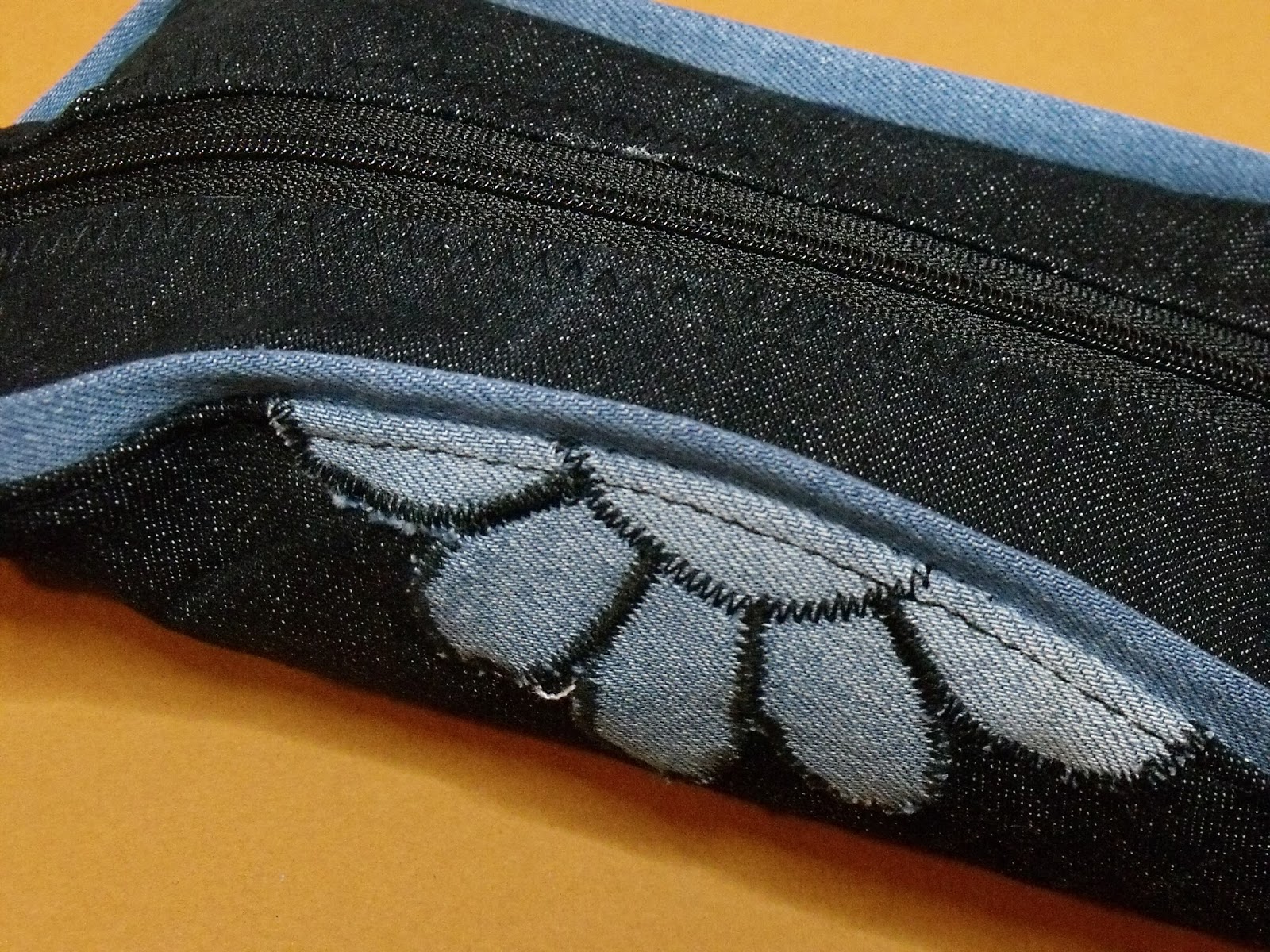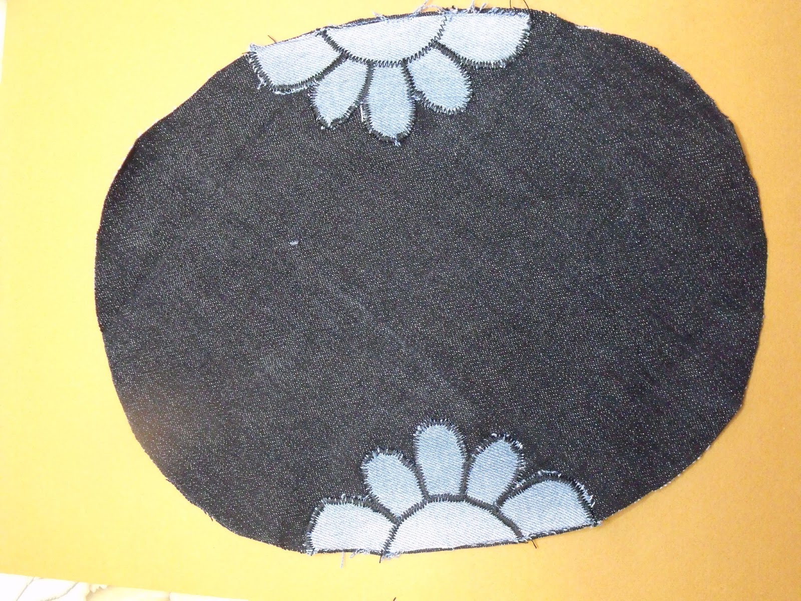 | A világos farmerből két fél virágot szabtam díszítésnek. |